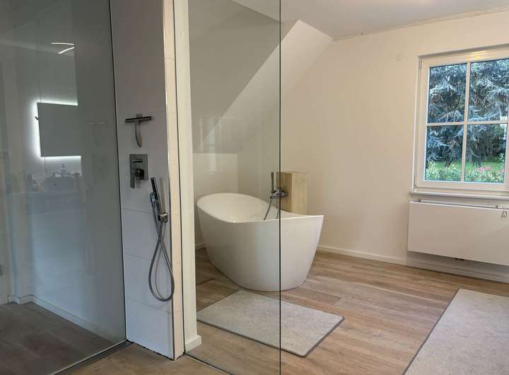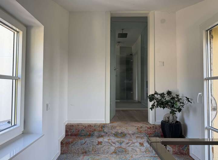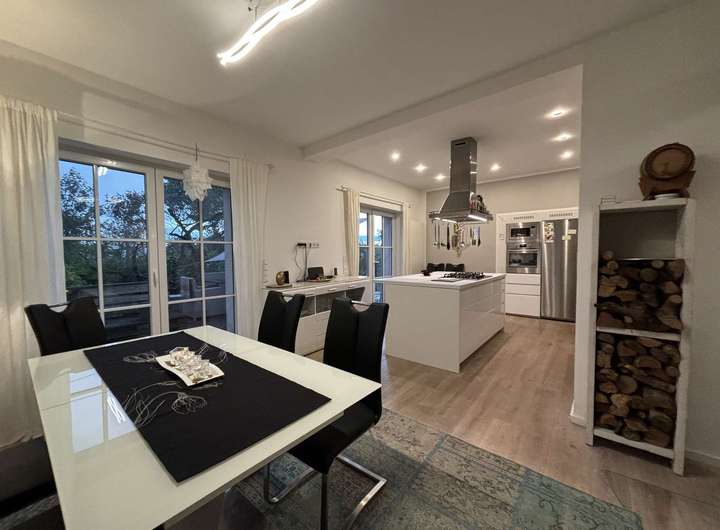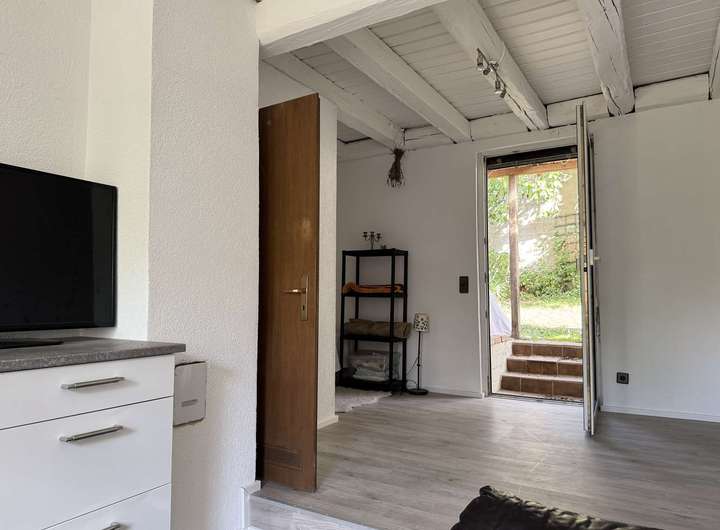 Die Immobilie überzeugt durch eine gelungene Kombination aus historischem Charme, moderner Ausstattung und großzügigen Nebenflächen. Wohnbereich: • Offener Wohn- und Essbereich mit Kamin (ca. 40 m²) • Zwei moderne Bäder sowie ein Gäste-WC • Einliegerwohnung mit eigenem Bad, Wohn- und Essbereich • Großzügiges Büro (ca. 25 m²) • Umfassende Modernisierung 2019 Besondere Highlights: • Symbiose aus Alt und Neu: historische Holzbalken kombiniert mit modernem Wohnambiente • Helle, offene Räume mit viel Tageslicht • Weitläufiges Grundstück mit ca. 20 Obstbäumen, Rosenanlage, Teich und Terrasse • Absolute Privatsphäre durch großen Abstand zu den Nachbarn Nutzflächen: • Neue Gaszentralheizung der Firma Buderus 2019 • Werkstattschuppen • Holzschuppen • Großzügiger Weinkeller • 45m² Terrasse, mit Teich im Garten • Heizungs- und Hausanschlussraum • Garage mit zusätzlichem Abstellraum