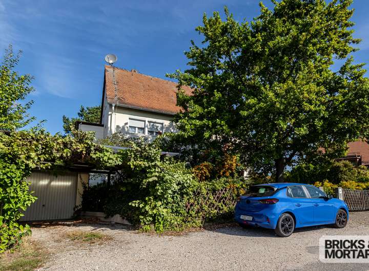 Das Grundstück liegt in einer ruhigen Nebenstraße, direkt neben unverbauten Feldern.
