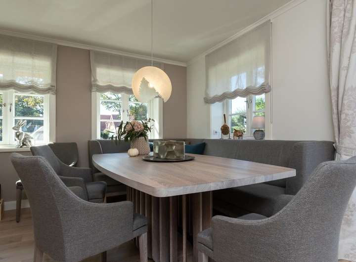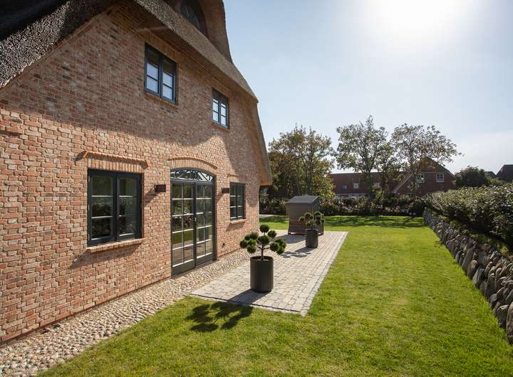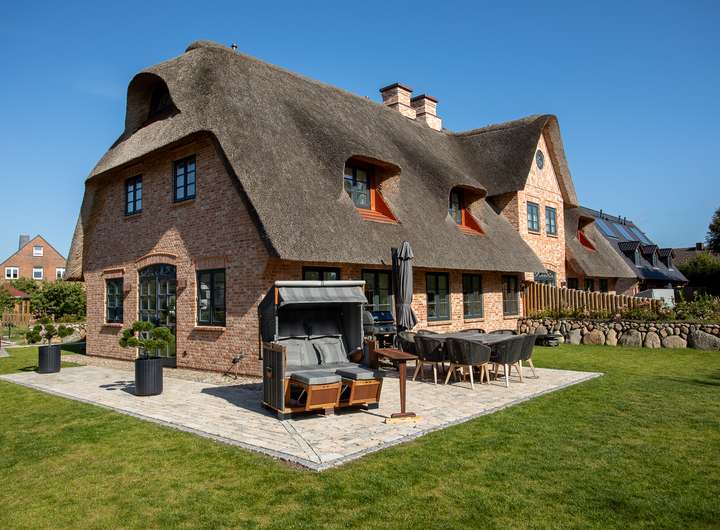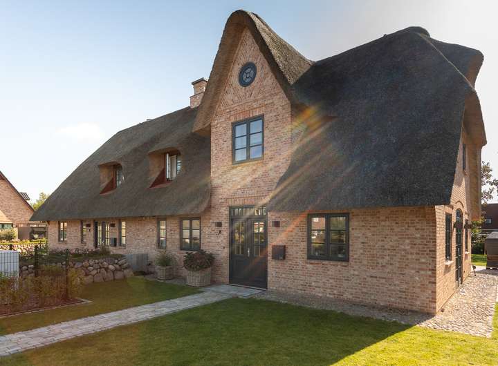 In direkter Dorflage, unweit von Wiesen und Feldern, entstand im Jahr 2019 auf einem großzügigen, sonnigen, 1.800 m² großen Grundstück dieses äußerst geschmackvoll gestaltete Doppelhaushälfte unter traditionellem Reetdach. Die hochwertige Bauausführung und die liebevolle Detailgestaltung verbinden modernen Wohnkomfort mit dem unverwechselbaren Charme der Sylter Baukultur.