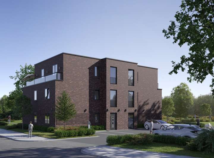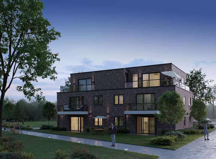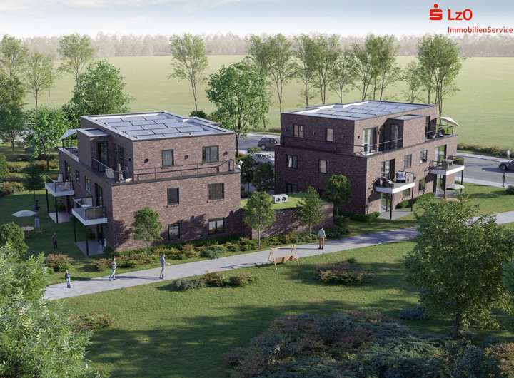 In guter Lage entsteht hier ein moderner Neubau von zwei MFH in KfW 40 QNG. Jedes MFH hat sechs Wohneinheiten, jeweils mit eigenem Stellplatz. Beide Objekte werden massiv gebaut, haben einen Fahrstuhl, werden über eine Wärmepumpe beheizt und bekommen eine PV-Anlage mit Batteriespeicher. Die jeweils sechs Wohnungen sind in Größen von 54 bis 77 m² geplant und bieten einen guten Mix für den Lastruper Mietmarkt. Die Planung in KfW 40 QNG bietet die Möglichkeit, neben der degressiven AfA auch noch die Vorteile der Sonder-AfA für 4 Jahre nutzen zu können.