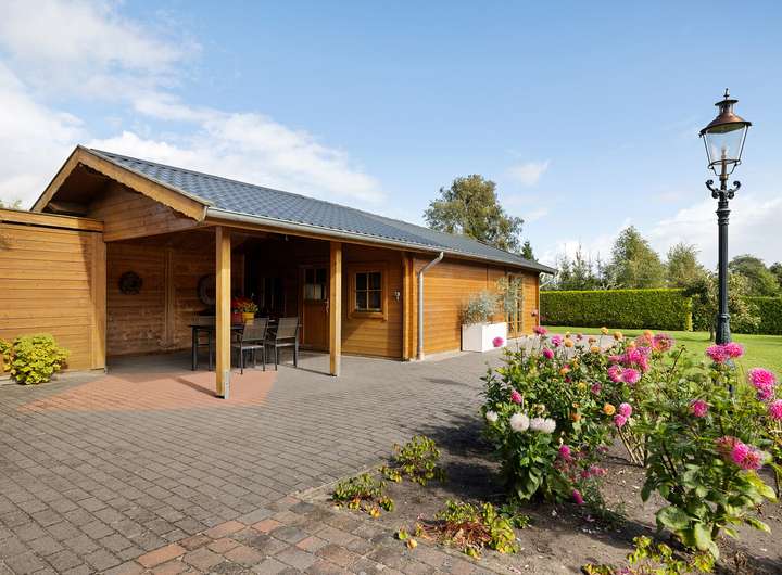 - großes Holzgartenhaus mit überdachten Terrassenteil