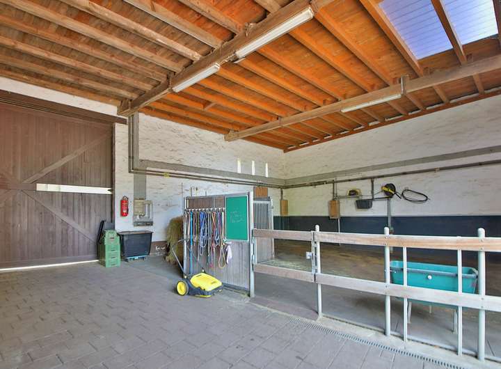 Pferdeliebhaber finden beste Bedingungen: drei Offenställe, eine beheizte Sattelkammer, ein kleiner Reitplatz, Paddock und parzellierte Weiden mit eigener Trail-Strecke im Kastanienwald. Beheizte Wasserleitungen und durchdachte Infrastruktur garantieren höchsten Komfort.