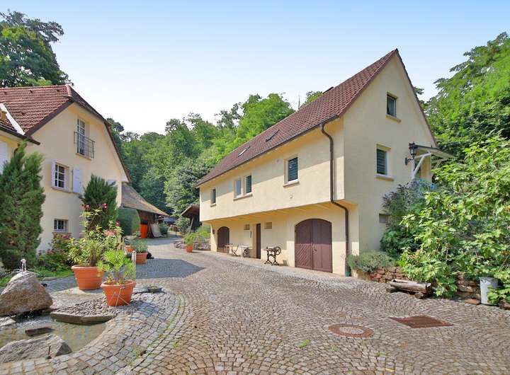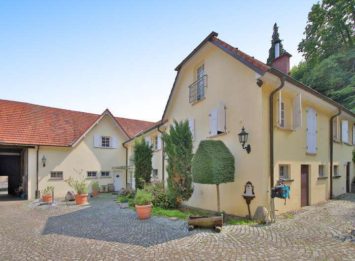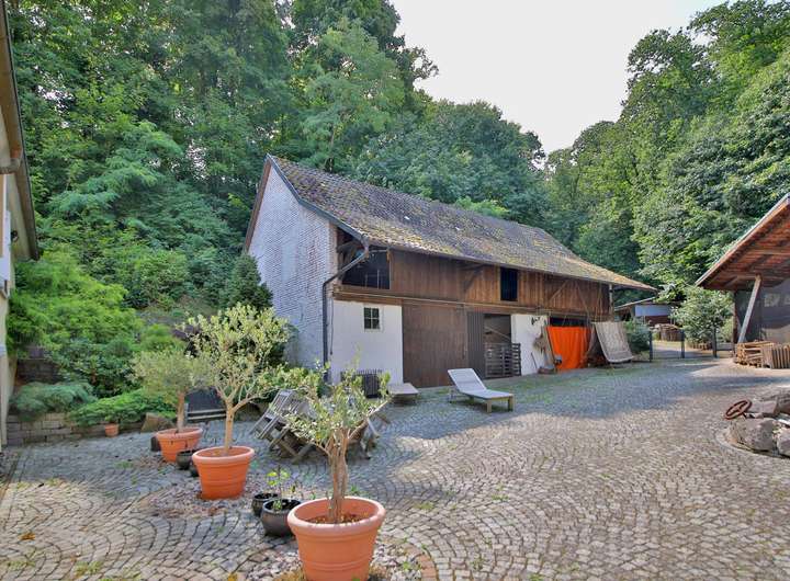 Drei Wohnhäuser mit ca. 560 m² Wohnfläche gruppieren sich um einen großzügigen, dorfplatzähnlichen Innenhof mit Natursteinpflaster, Brunnen und südländischem Charme. Ob Mehrgenerationenwohnen, Wohnen & Arbeiten oder private Pferdehaltung – dieses Ensemble eröffnet Ihnen seltene Möglichkeiten, Visionen Wirklichkeit werden zu lassen.