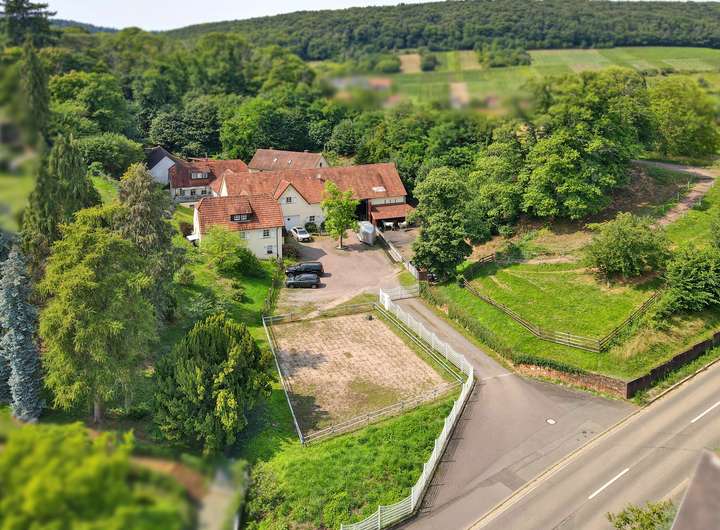 Am Rande von Bad Bergzabern, mitten in der „Toskana der Südpfalz“, öffnet sich ein einzigartiges Landgut mit über 24.500 m² Grundstück. Eingebettet in Weinberge, Wiesen und einen alten Kastanienwald entfaltet sich ein Anwesen, das ländliche Idylle mit mediterranem Lebensgefühl verbindet.