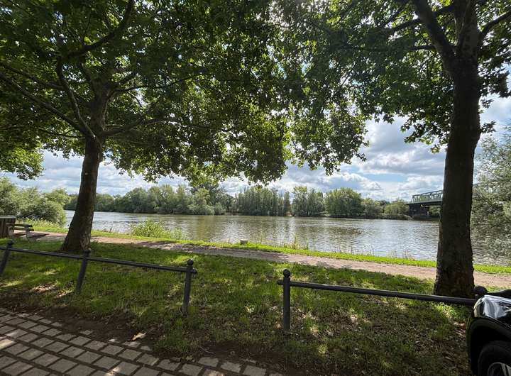 Die Villa liegt direkt, aber erhöht und somit vor Hochwasser geschützt, am Mainufer von Mainz-Kostheim. Alle Geschäfte des täglichen Bedarfs sind fußläufig zu erreichen.