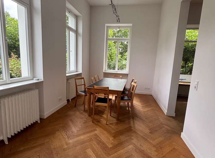 Die Gesamtanlage steht unter Ensembleschutz und somit sind alle Außenanlagen denkmalgeschützt. Das Vorderhaus ist seit 01.01.2021 vemietet.