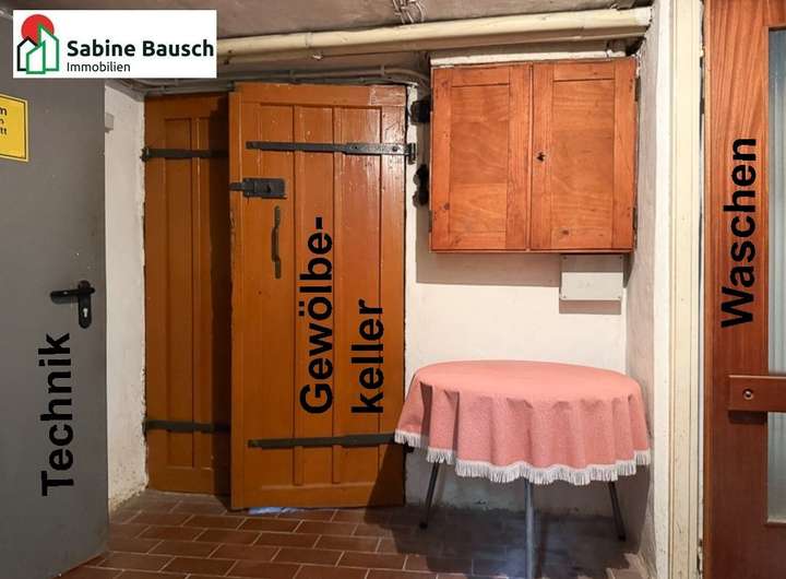 Das Gebäude ist vollständig unterkellert. Sie betreten den Keller über einen Vorraum, der Sie in sämtliche Räume führt. Auf der rechten Seite hat der Architekt die Waschküche und auf der linken Seite den Technikraum, der sich ebenfalls gut zum Wäschetrocknen eignet angeordnet. Geradeaus gelangen Sie in einen wunderbar erhaltenen Naturstein-Gewölbekeller – ein echter Blickfang mit historischem Charakter, ideal zur Lagerung oder für besondere Nutzungen.