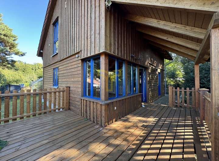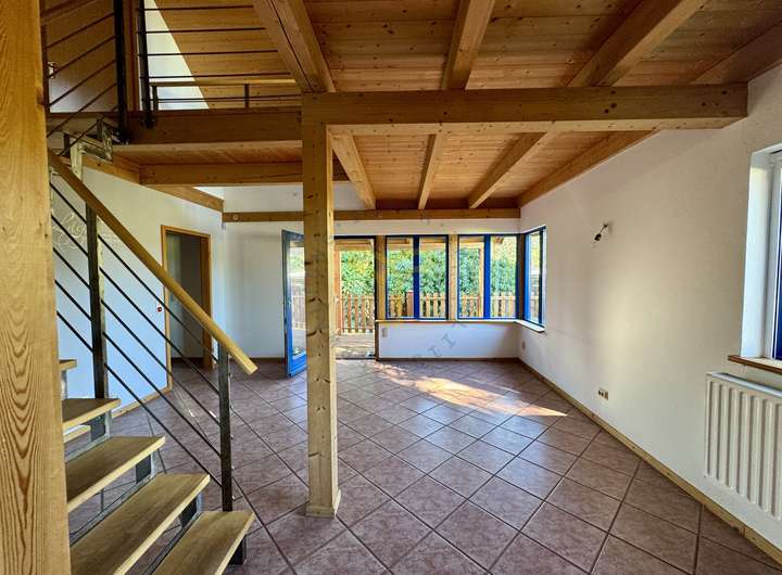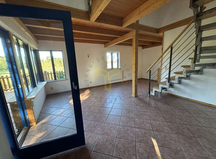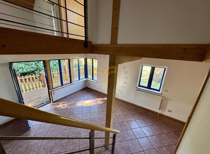 Dieses besondere Einfamilienhaus in Holzständerkonstruktion verbindet zeitgemäßes Wohnen mit dem Charme natürlicher Materialien. Im Inneren schaffen die sichtbaren Holzbalken eine warme, behagliche Atmosphäre und verleihen den Räumen einen unverwechselbaren Charakter.