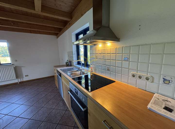 Durch die großen Fensterfronten genießen Sie einen traumhaften Blick über Felder und Wiesen – Natur pur direkt vor Ihrer Haustür. Das satte Grün der Umgebung lädt zum Durchatmen und Entspannen ein und macht das Haus zu einem idealen Rückzugsort für Familien und Naturliebhaber.