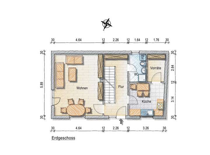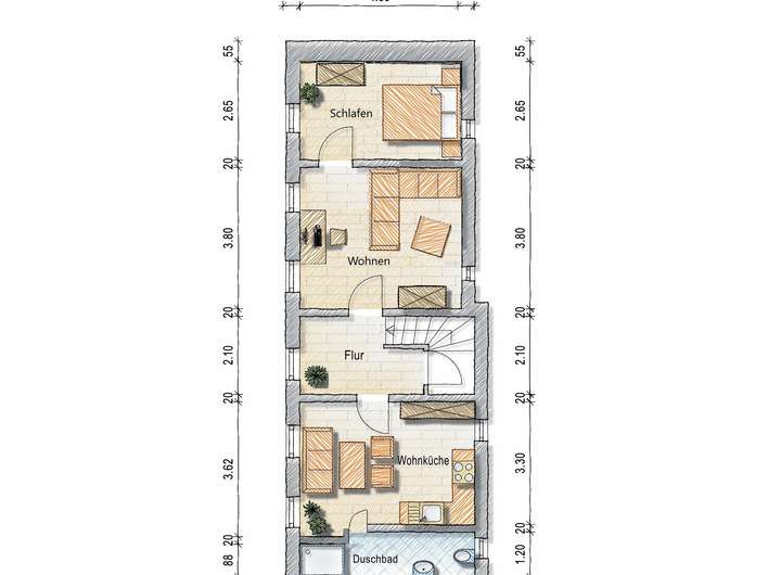 * Flexible Nutzung des Vorderhauses: eine oder zwei getrennte Wohneinheiten (EG & OG),