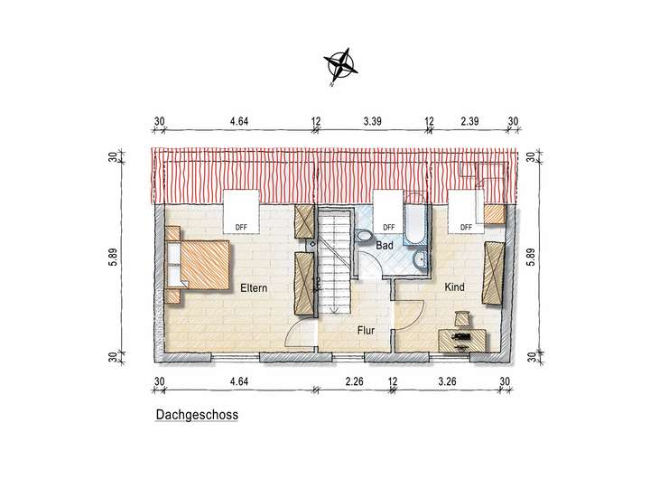 * Anschlüsse wie z.B. Wasser, Abwasser, Strom sind für beide Gebäudeeinheiten voneinander getrennt,