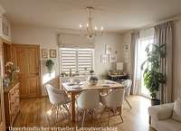 Da beide Häuser aktuell vermietet sind, werden auf ausdrücklichen Wunsch des Mieters keine Fotos der original möblierten Räume veröffentlicht. Stattdessen wurden die Innenräume fotografiert und durch Visualisierungen ansprechend aufbereitet.