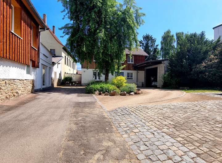 Der historische Ortskern ist geprägt von barocken Hofanlagen, liebevoll erhaltenen Fachwerkhäusern und einer lebendigen Dorfgemeinschaft, eine Umgebung, die Geschichte atmet und zugleich modernes Leben ermöglicht.