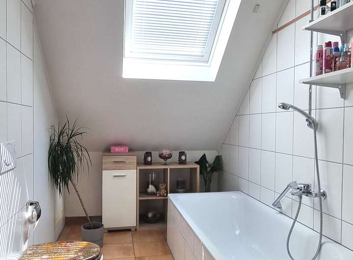 * Moderne Sanitärausstattung, teilweise Fliesen- und Laminatböden,