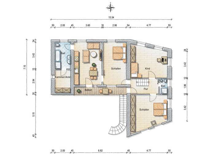 * Praktische Raumaufteilung, sehr geräumige und helle Zimmer,