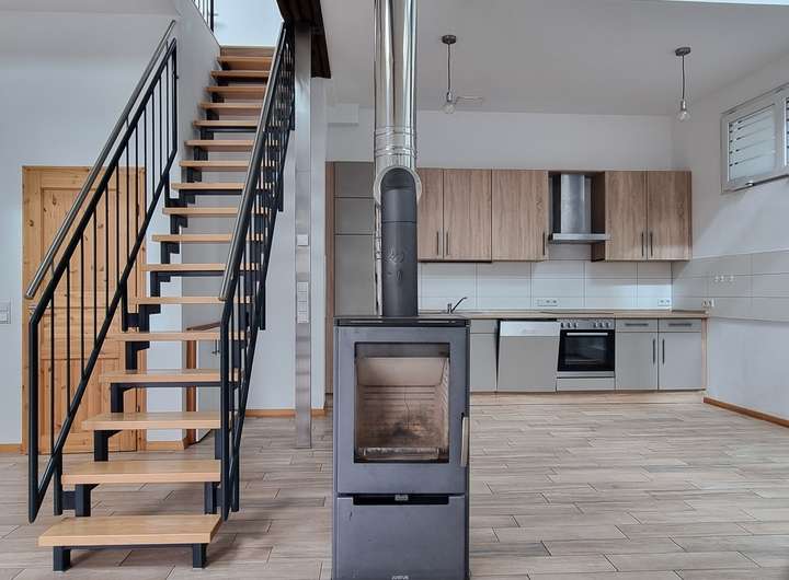 * Maßgeschneiderte Einbauküche, Kaminofen,