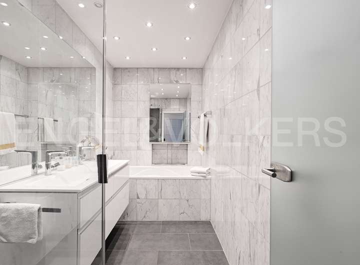 - Master-Bad mit Doppelwaschtisch, Badewanne und Dusche