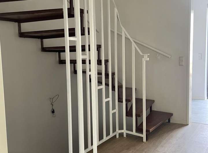 Im Erdgeschoss erwartet Sie ein freundlicher Eingangsbereich mit Garderobe und Gäste-WC. Die helle Küche bietet Platz für Familie und Hobbyköche. Der anschließende Wohn- und Essbereich überzeugt durch seine offene Gestaltung und große Fensterflächen.