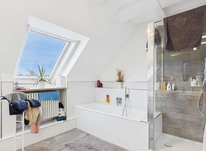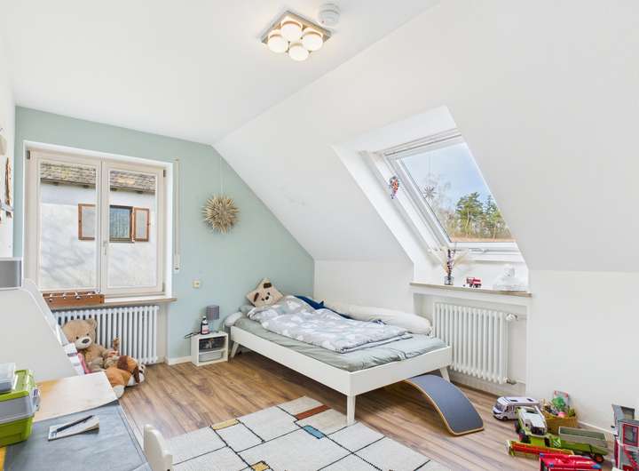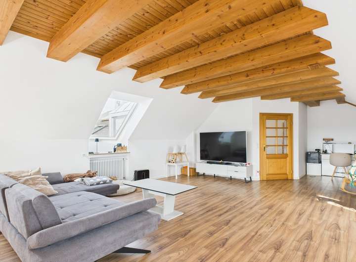 Willkommen in dieser lichtdurchfluteten, großzügigen 5‑Zimmer-Dachgeschoss-Wohnung in einem gepflegten Zweifamilienhaus.