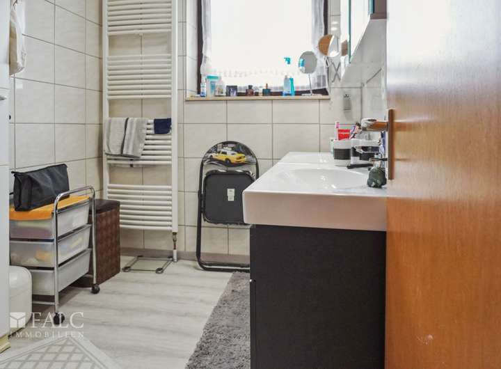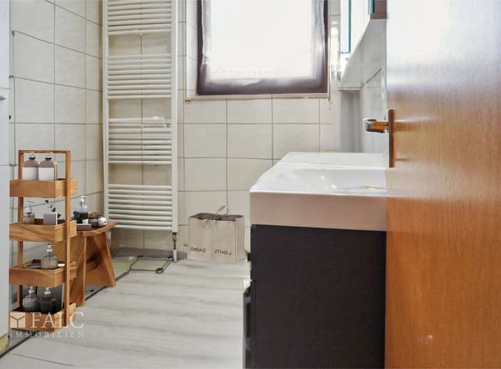 Das Badezimmer wurde vor 3-4 Jahren vollständig erneuert und verfügt nun über moderne Leitungen, zwei Waschbecken und eine barrierefreie Ausstattung.