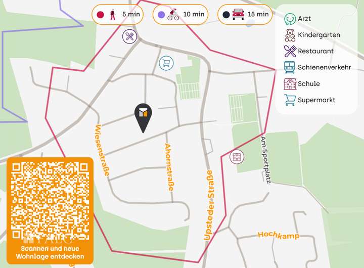Kindergarten und Grundschule sind innerhalb von einer Minute zu erreichen, was den Standort besonders familienfreundlich macht.