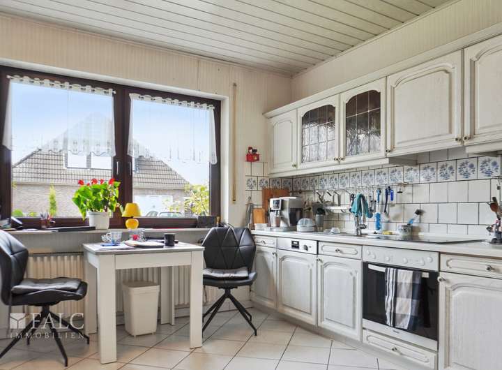 Eine großzügige Küche, mit allen notwendigen Geräten, bietet ausreichend Raum zum Kochen und Verweilen.