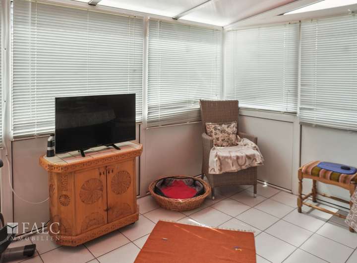 Der Wintergarten, errichtet Mitte der 80er Jahre, bietet zusätzlichen Wohnraum und erlaubt das Genießen der Natur auch bei kühlerem Wetter.
