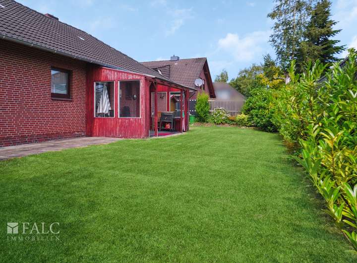 Ferner enthält dieser schöne Bungalow einen Wintergarten, der einige Jahre nach Fertigstellung des Gebäudes angebaut wurde und zum Verweilen einlädt. Im Sommer haben Sie die Möglichkeit, auf der Gartenterrasse die Sommerabende zu genießen.