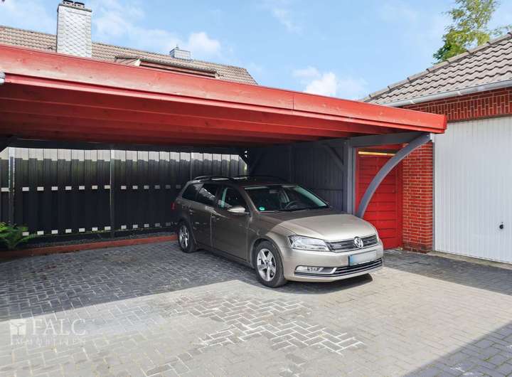 Willkommen in Ihrem Traumhaus. Dieser Bungalow, Baujahr 1976, vereint auf einer Wohnfläche von 120 qm Luxus und Entspannung. Auf dem 678 qm großen Grundstück finden Sie alles, was Sie für ein angenehmes Leben benötigen. Im Außenbereich empfängt Sie eine großzügig gestaltete Einfahrt sowie ein Doppelcarport. Dieses wurde erst im Jahr 2020 gebaut, und bietet Ihnen und Ihren Gästen ausreichend Parkmöglichkeiten. Eine zusätzliche Garage mit Garagentor rundet das Stellplatzangebot ab.