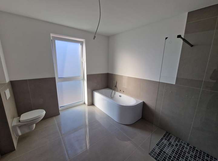 Das Haus wurde Massiv gebaut und ausgestattet mit Fußbodenheizung (Luftwärmepumpe) in allen Räumen und Dreifachverglaste Kunststofffenster mit elektrisch bedienbaren Rollläden.