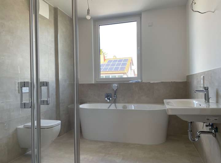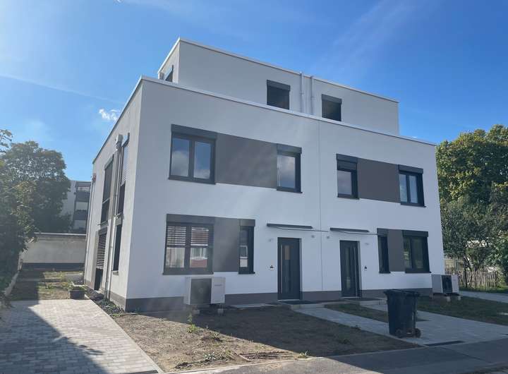 PLATZ FÜR IHRE TRÄUME – FAMILIENGERECHT STILVOLL & EINZIGARTIG Diese neu erbaute Doppelhaushälfte (Erstbezug) vereint modernes Design, hochwertige Ausstattung und eine durchdachte Architektur – ideal für Familien, die großzügigen Raum, klare Strukturen und ein komfortables Zuhause suchen. Auf rund 205 m² Wohnfläche bietet das Haus genügend Platz für jedes Familienmitglied, gemeinsame Momente und individuelle Rückzugsorte. Das real geteilte Grundstück mit ca. 320 m² in bevorzugter Lage von Mainz-Weisenau schafft die perfekte Basis für ein behagliches Zuhause in einem familienfreundlichen Umfeld. Das Herzstück des Hauses bildet der offene Wohn- und Essbereich im Erdgeschoss mit ca. 46 m² und direktem Zugang zur sonnigen Süd-West-Terrasse und dem Garten. Hier ist Platz für gemeinsame Familienessen, Spieleabende oder gesellige Runden mit Freunden. Die angrenzende Küche lädt zum Kochen und Genießen ein, während ein separater Hauswirtschaftsraum und ein praktischer Vorratsraum den Alltag erleichtern. Ein besonderes architektonisches Highlight ist der offene Luftraum mit Galerie, der dem Wohnbereich Großzügigkeit, Licht und ein besonderes Wohngefühl verleiht. Im Obergeschoss erwarten Sie drei helle, gut geschnittene Schlafzimmer, die sich perfekt als Kinder-, Eltern- oder Arbeitszimmer nutzen lassen. Ein großes Tageslichtbad sorgt für Komfort und Wohlbefinden. Das Dachgeschoss bietet einen weiteren, vielseitig nutzbaren Raum sowie ein zweites Badezimmer. Von hier aus gelangen Sie auf die ca. 23 m² große Dachterrasse, die als Rückzugsort zum Entspannen, Lesen oder Sonnen einlädt. Die Bäder haben Wellnesscharakter, sind hochwertig ausgestattet und sehr geschmackvoll gestaltet. Großzügige, bodengleiche Duschen mit Glasabtrennung, elegante Badewannen, edle Fliesen und moderne Markenarmaturen schaffen eine Atmosphäre, die Alltag und Entspannung perfekt miteinander verbindet. Ein zusätzliches Gäste-WC im Erdgeschoss rundet das Angebot ab. Eine durchgängige Fußbodenheizung vom Keller bis ins Dachgeschoss, moderne Fliesenböden und praktische Details wie Wäscheabwurfschächte auf jeder Etage sorgen für spürbaren Wohnkomfort und sparen unnötige Wege in den Waschraum. Zwei Außenstellplätze mit Wallbox-Vorbereitung bieten zukunftssichere Mobilität. Dank der energieeffizienten Bauweise genießen Sie nicht nur modernen Wohnkomfort, sondern auch ein gutes Gefühl bei den Nebenkosten. Im Untergeschoss steht Ihnen ein großzügiger Hobbyraum mit ca. 30 m² zur Verfügung, der ebenfalls mit einer Fußbodenheizung ausgestattet ist und vielfältige Nutzungsmöglichkeiten bietet – ob als Fitnessbereich, Heimkino oder kreativer Rückzugsort. Ergänzt wird das Untergeschoss durch einen weiteren Kellerraum sowie einen großen Waschraum mit ausreichend Platz für zusätzliche Dinge des täglichen Bedarfs. Dieses Haus vereint alles, was sich Familien heute wünschen: viel Platz, klare Strukturen, moderne Technik und eine hochwertige Ausstattung – in einer Lage, die urbanes Leben und Ruhe verbindet. Hier entsteht nicht nur ein Haus, sondern Ihr Familienmittelpunkt – ein Ort zum Wohlfühlen, Wachsen und Bleiben.