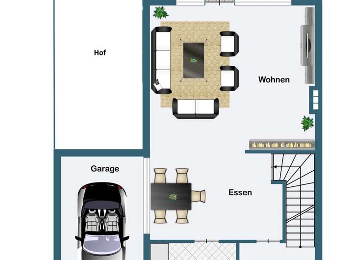 Der schöne, gepflegte Garten ist aufgrund des idealen Zuschnitts optimal von Familien nutzbar. Darüber hinaus gibt es zwischen Garage und Terrasse seitlich eine Hoffläche die zum Ballspiel einlädt.