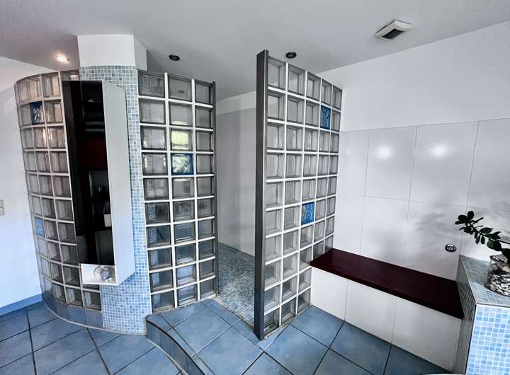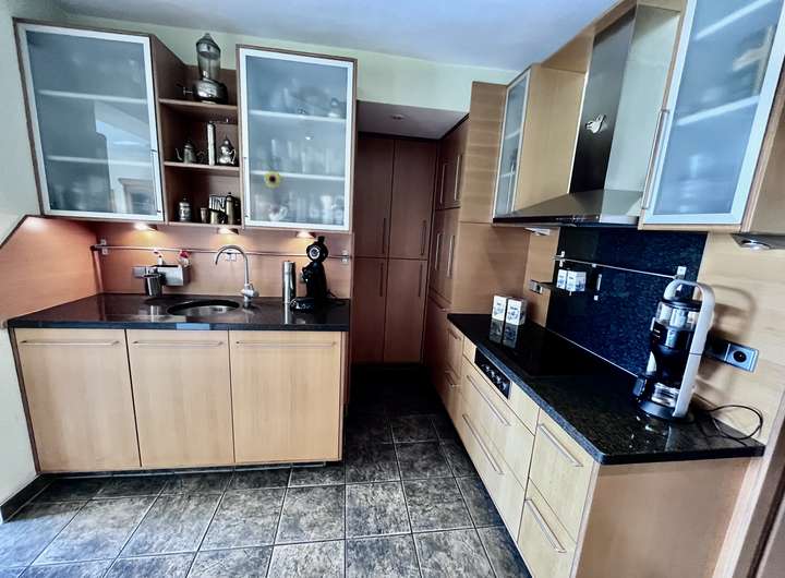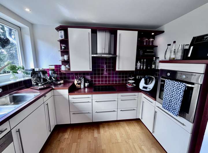 Die beiden Einbauküchen, sämtliche Badmöbel, der Kaminofen sowie die fest verbauten, auf Maß gefertigten Bänke auf dem Terrassendeck sind im Kaufpreis enthalten.