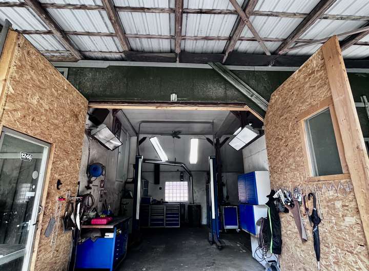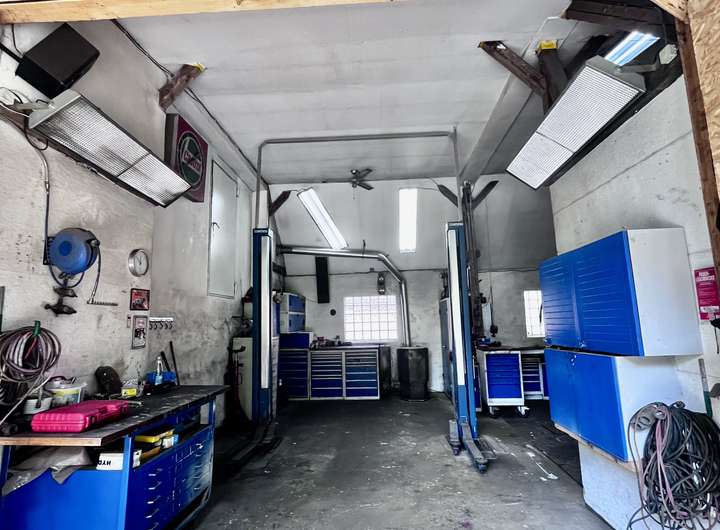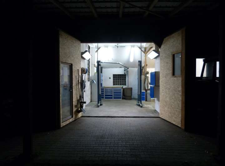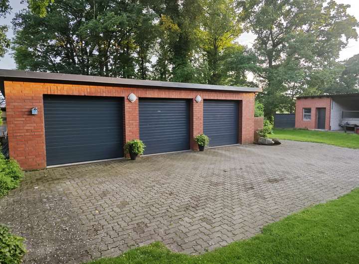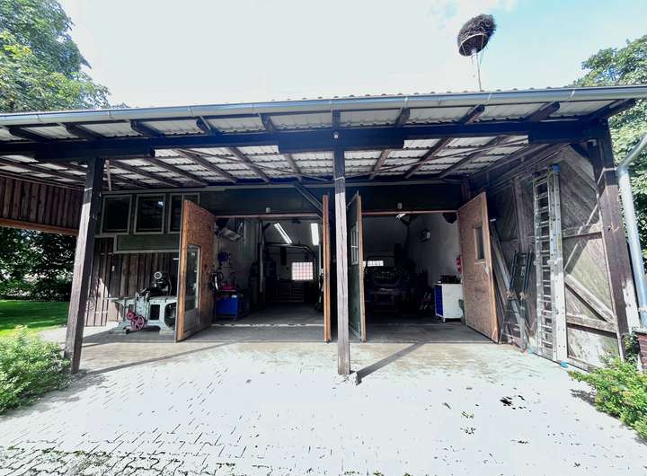 In der Schrauberwerkstatt würden 2 Fahrzeuge Platz finden, im separaten Garagengebäude weitere 3. Zudem gibt es weitere Carports und ein Schleppdach vor den beiden Werkstattplätzen.