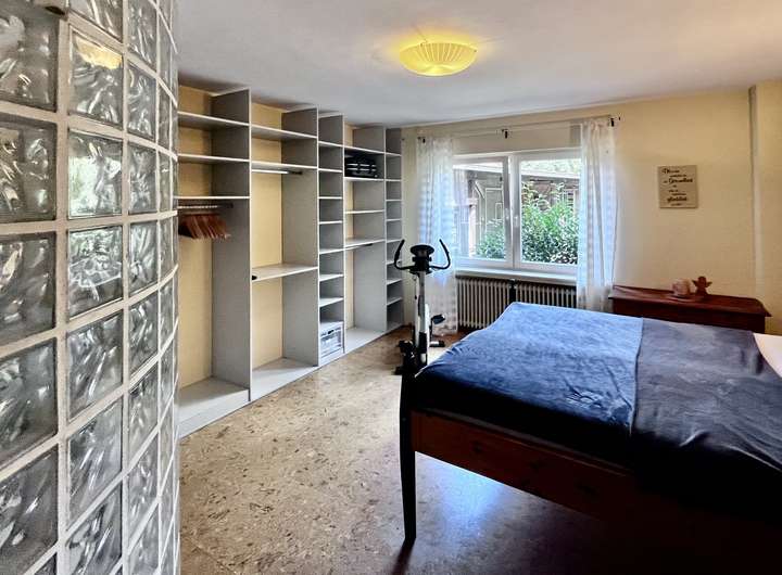 Bei der Gartenpflege leisten ein Bewässerungssystem, das sein Wasser aus einem 40 Meter tiefen Grundwasserbrunnen bezieht, und die großzügig angelegte Mähroboterschleife gute Dienste. Der Glasfaseranschluss liegt bereits im Haus und wartet auf die Freigabe.