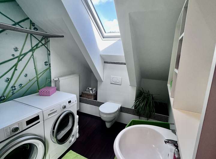 Das Haus ist voll unterkellert. Hier unten befinden sich neben mehreren Räumen auch ein großer Hauswirtschaftsraum mit zusätzlicher Dusche.