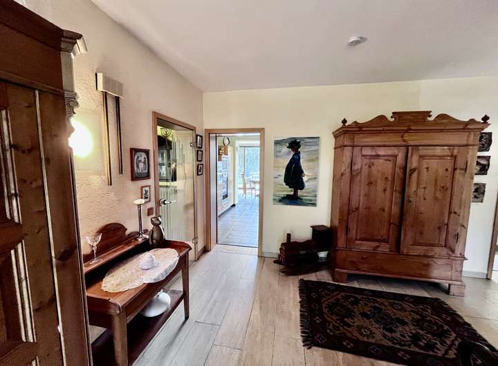 Was müssen Sie über diesen Hof wissen? Bloß...wo fängt man hier an, wo hört man auf?!? Das Haus ist aus dem Baujahr 1970, wurde aber laufend saniert und modernisiert. So bekam nicht nur die 4-Zimmer-Wohnung im Erdgeschoss (ca. 153,89m²) im Laufe der Jahre u.a. ein neues Badezimmer, eine neue Küche, den Wintergarten sowie z.T. neue Fenster und eine neue Haustür.