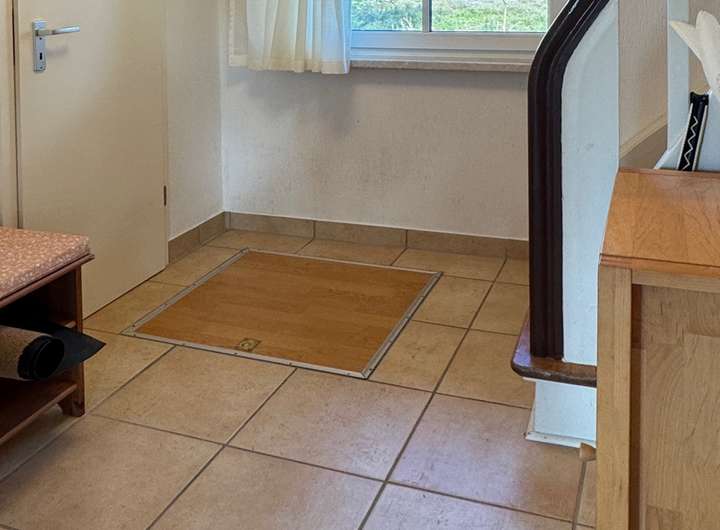 Fliesenboden im Erdgeschoss, Holzboden im Obergeschoss