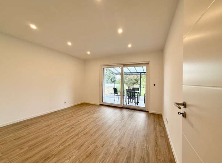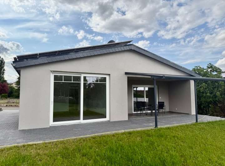 Willkommen in Ihrem neuen Lebensmittelpunkt! Dieser frisch sanierte Bungalow bietet Ihnen auf ca. 118 m² Wohnfläche ein modernes Zuhause mit klarer Raumaufteilung, das sich ideal für ein Paar mit Kind eignet. Zwei gemütliche Schlafzimmer, ein offener Wohn- und Essbereich mit direktem Zugang zur überdachten Terrasse sowie ein praktischer Abstellraum und ein modernes Duschbad mit Fenster schaffen ein behagliches Wohnambiente.