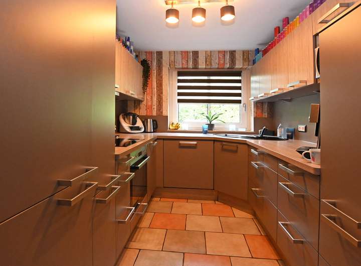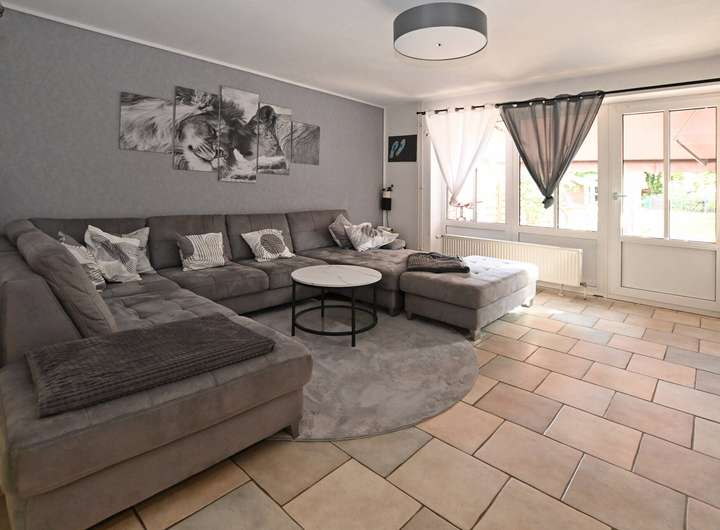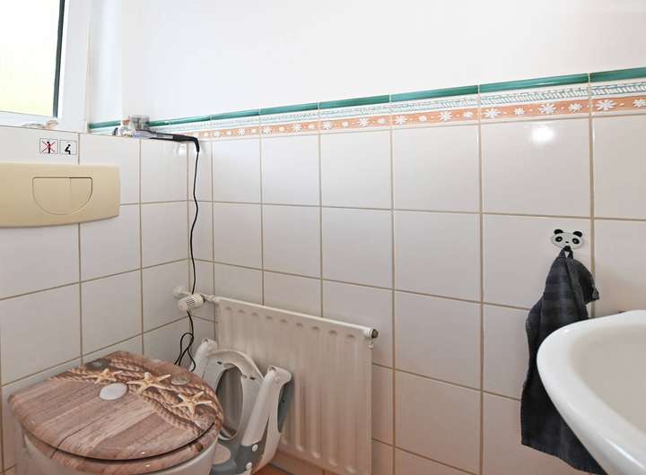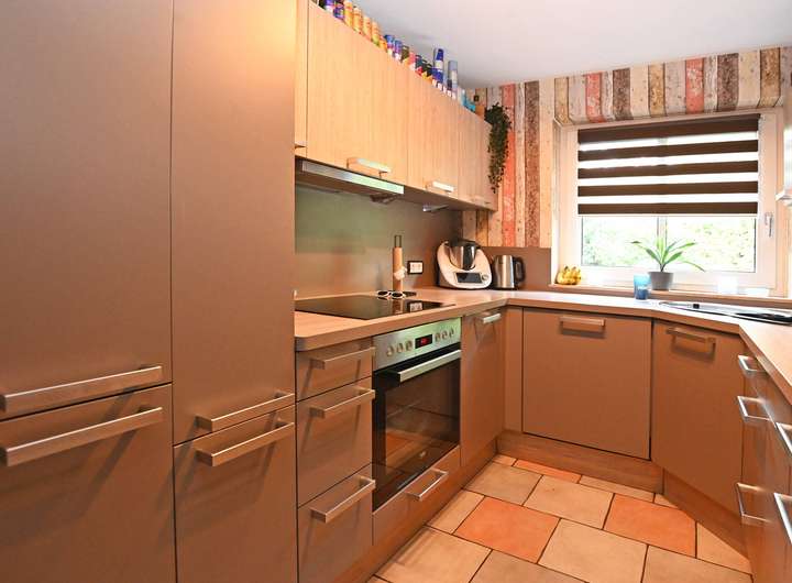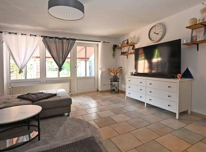 Die Innenflächen des Reihenmittelhauses machen einen sehr freundlichen und gepflegten Eindruck, denn die meisten Ausstattungsmerkmale sind seit dem Baujahr bereits einmal modernisiert worden. Dies gilt für die Küche (2012), das Bad (2019), das hochwertige Holzparkett aus geweißter Eiche (2023) und auch die Haustechnik (Gasheizung 2004). Im Weiteren sind einzelne Fensterelemente und Rollläden ausgetauscht worden, so dass sich das Haus in einem wirklich guten Zustand zeigt.