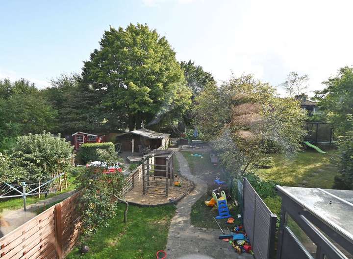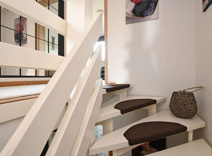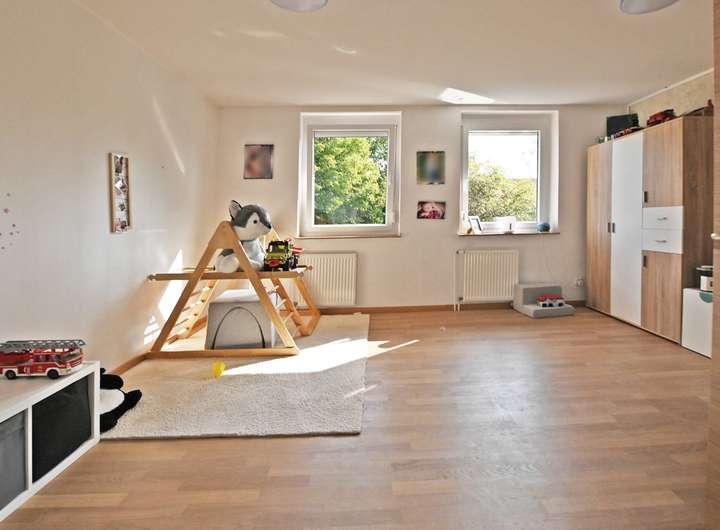 Eine zeitlos weiße und geschmackvolle Holztreppe führt ins Ober- und Dachgeschoss. Im Obergeschoss sind die zwei möglichen Kinderzimmer aktuell in ein großes Kinderzimmer mit herrlichem Blick über den Garten umgestaltet worden, zusätzlich findet sich hier das Duschbad und ein weiteres großes Zimmer, nutzbar z.B. als Elternschlaf-, Arbeits- oder Gästezimmer. Das Dachgeschoss hält außerdem ein ganz eigenes Reich mit begehbarem Kleiderschrank, Bett- und Couchecke für Kinder oder Eltern bereit.