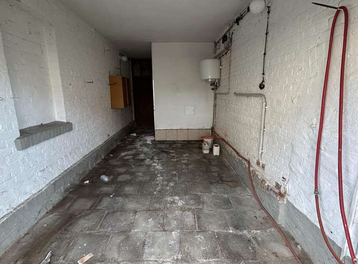 Erdgeschoss: Flur, Küche, Wohnzimmer, Badezimmer mit Dusche, Kellerzugang