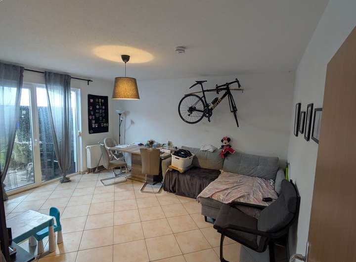 +Wohnzimmer m. doppelflügelige Terrassentür und Zugang zur Terrasse