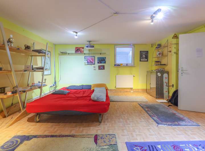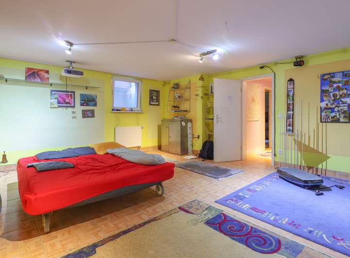Im Untergeschoss befindet sich neben einem weiteren großen Raum (Hobby- oder Gästezimmer ca. 27 m²)) ein Duschbad, die Waschküche sowie ein Abstellraum auf insgesamt ca. 55 Quadratmetern.