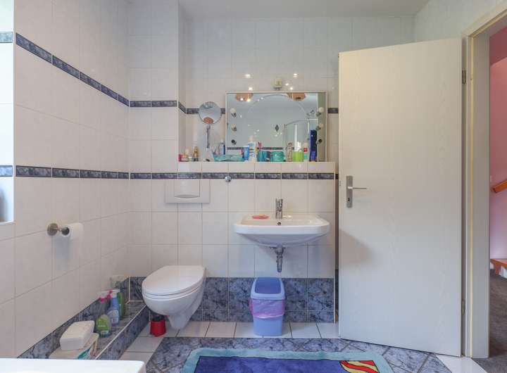 OG: vollgefliestes Dusch-Wannenbad, großes Schlafzimmer (ca. 23m²) sowie 2 Kinderzimmer