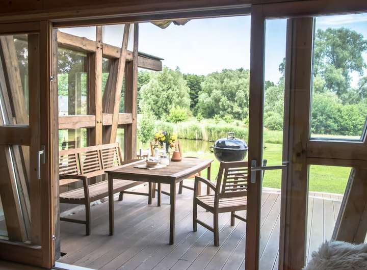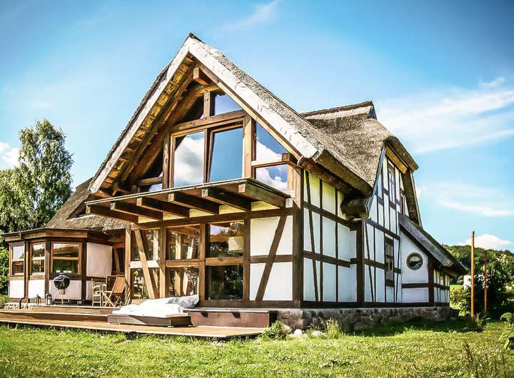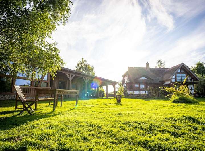 Dieses exklusive Fachwerkhaus mit separatem Loft befindet sich in Buschvitz auf der wunderschönen Insel Rügen, direkt am kleinen Jasmunder Bodden.
