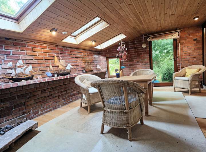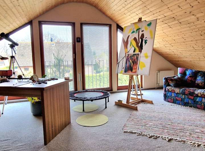 Viel Raum für Familie, Hobby und Arbeit (Glasfaseranschluss) - Wohlfühloase in Feldrandlage in Algermissen-Bledeln! Dieses großzügige Architektenhaus wurde im Jahr 1982 in Massivbauweise errichtet und 1991 mit einem Anbau ans Wohnzimmer (noch nicht in der Wohnflächenberechnung berücksichtigt) sowie einer zusätzlichen Garage erweitert. Es bietet auf ca. 163 m² Wohnfläche und rund 284m² Gesamtfläche reichlich Platz für die ganze Familie und individuelle Entfaltung. Das Haus verfügt über insgesamt 7,5 Zimmer, 2 Badezimmer, ein Gäste-WC mit Dusche, eine geräumige Sauna mit eigener Dusche, ein Studio sowie ein offenes Wohnzimmer mit Galerie. Besonders hervorzuheben ist das Dachgeschoss, das als eigene Wohneinheit (z.B. für Heranwachsende oder als Arbeitsbereich) genutzt werden kann. Ein Kamin mit Umluftfunktion und ein edler Gusseisenofen mit Keramikkacheln sorgen zusätzlich für wohlige Wärme. Der ca. 115 m² große und voll ausgebaute Vollkeller bietet zusätzlichen Raum für Hobby und Freizeit - hier befindet sich auch die geräumige Sauna mit eigener Dusche. Alle Kellerräume verfügen über Iso-Fenster in Lichtschächten und Heizkörper. Billard-Raum mit -Tisch sowie Modeleisenbahn gehören mit zum Gesamtangebot. Eine Außentreppe führt direkt in den Garten. Die große Garage und das geräumige Carport direkt am Hauseingang sowie eine Fahrradgarage mit spezieller Sicherungskette komplettieren das üppige Platzangebot. Auf dem 462 m² großen Grundstück befindet sich eine sonnige Südterrasse, die zum Entspannen und Genießen einlädt. Diese nicht einsehbare Terrasse können Sie zusätzlich direkt aus dem Schlafzimmer betreten und sich von der Morgensonne verwöhnen lassen. Durch die Ortsrandlage in einer Sackgasse genießen Sie idyllische Ruhe und einen traumhaften Blick ins Grüne. Die Lage des Hauses ist ideal: In nur 20 Fahrminuten erreichen Sie sowohl Hannover als auch Hildesheim. Hier vereinen sich ländliche Idylle und eine gute Anbindung an die beiden Städte. Lassen Sie sich von diesem einzigartigen Haus verzaubern und vereinbaren Sie noch heute einen Besichtigungstermin!