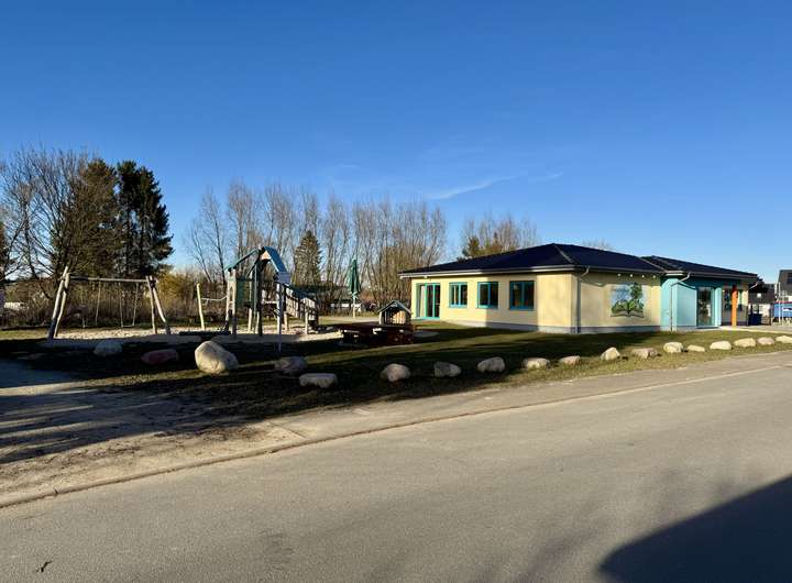 Kindergarten, Bushaltestelle und Gemeindehaus befinden sich in unmittelbarer Nähe, am Rand des Baugebietes.