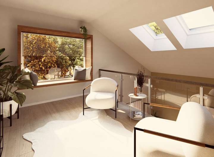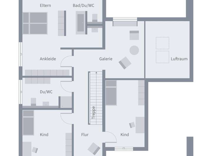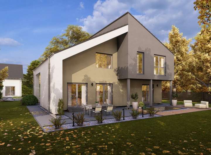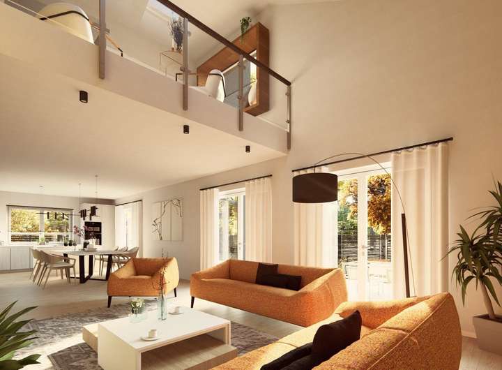Unser Pult 28 besticht durch seine durchdachte Raumaufteilung und moderne Architektur, die ideal für Familien ist. Im Erdgeschoss erwartet Sie ein großzügiger und offener Wohn-Essbereich, der zum gemeinsamen Verweilen und Genießen einlädt. Hier können Sie mit Familie und Freunden gesellige Abende verbringen oder einfach den Alltag entspannt ausklingen lassen. Im Dachgeschoss befindet sich ein komfortables Elternschlafzimmer mit integriertem Badezimmer, welches höchsten Wohnkomfort und Privatsphäre bietet. Zwei geräumige Kinderzimmer bieten den jüngsten Familienmitgliedern genügend Platz zum Spielen und Lernen. Eine große Galerie lädt zum Entspannen und Träumen ein, sei es mit einem guten Buch oder einfach bei einem Blick in den Garten. Dieses Einfamilienhaus vereint Funktionalität und stilvolles Design und erfüllt alle Wünsche für modernes Wohnen.