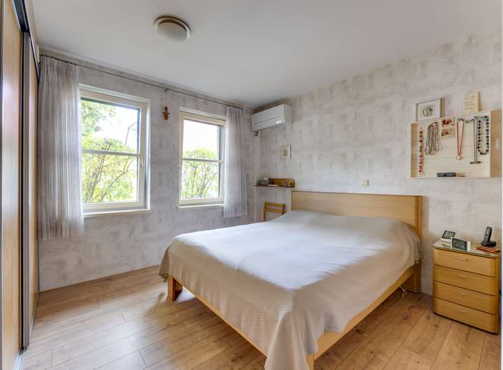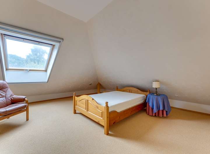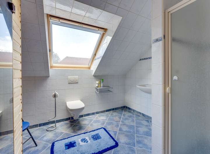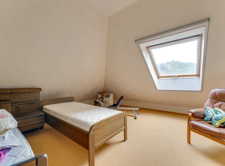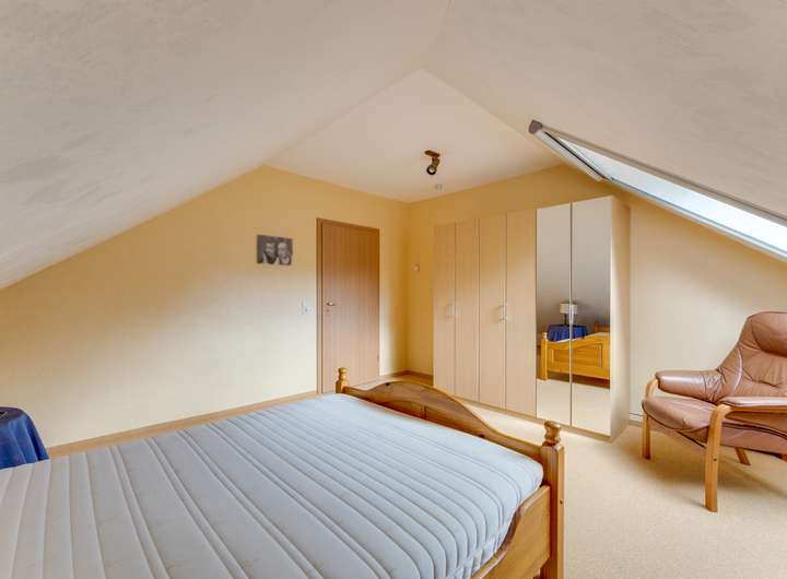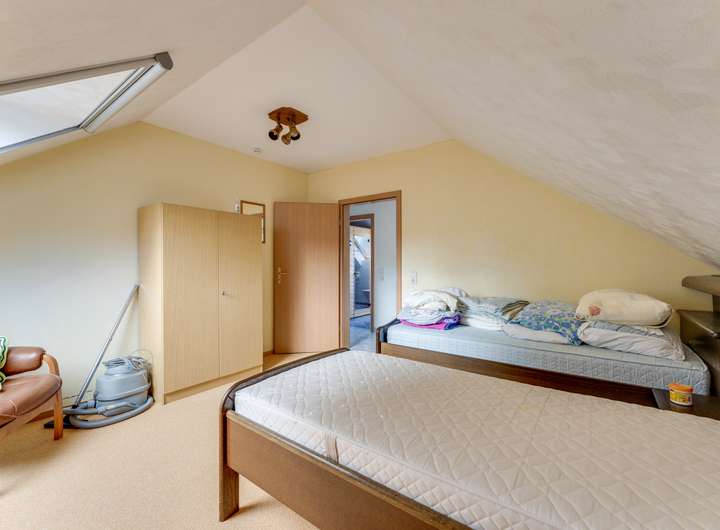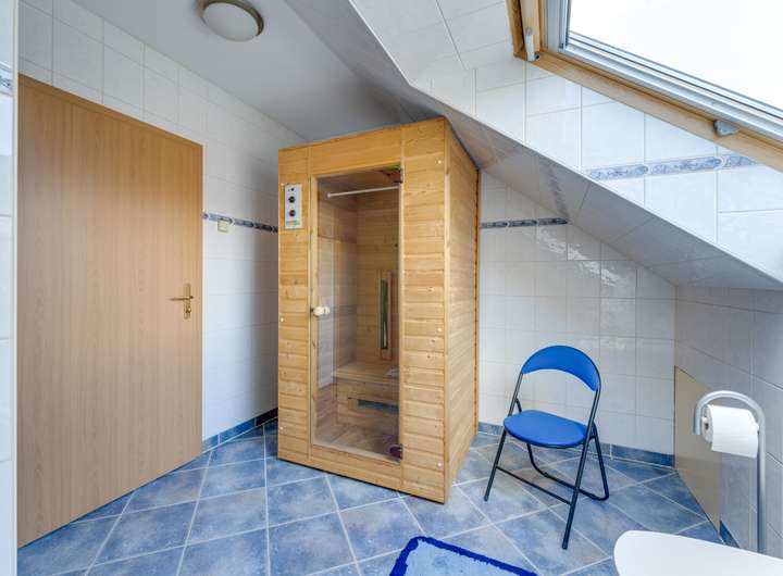 Im ersten Stock befinden sich zwei geräumige Schlafzimmer mit jeweils ca. 12 m². Das attraktive Badezimmer im Obergeschoss ist mit Dusche, Toilette, Waschbecken und einer eingebauten Sauna ausgestattet – ein luxuriöses Extra für alle, die Entspannung schätzen. Hier befindet sich auch der Hauswirtschaftsraum mit dem Zentralheizungskessel und der Wärmepumpe, die 2024 ausgetauscht wurden. Die Fußbodenheizung im Obergeschoss trägt zum Gesamtkomfort und zur Energieeffizienz des Hauses bei.